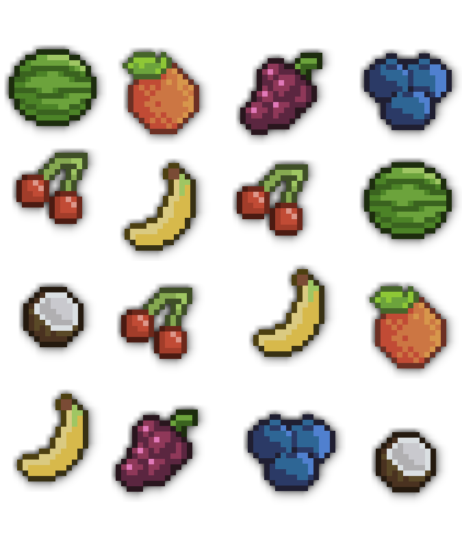 In this game you match three or more fruits to get score points if you match more than three you also get more time!